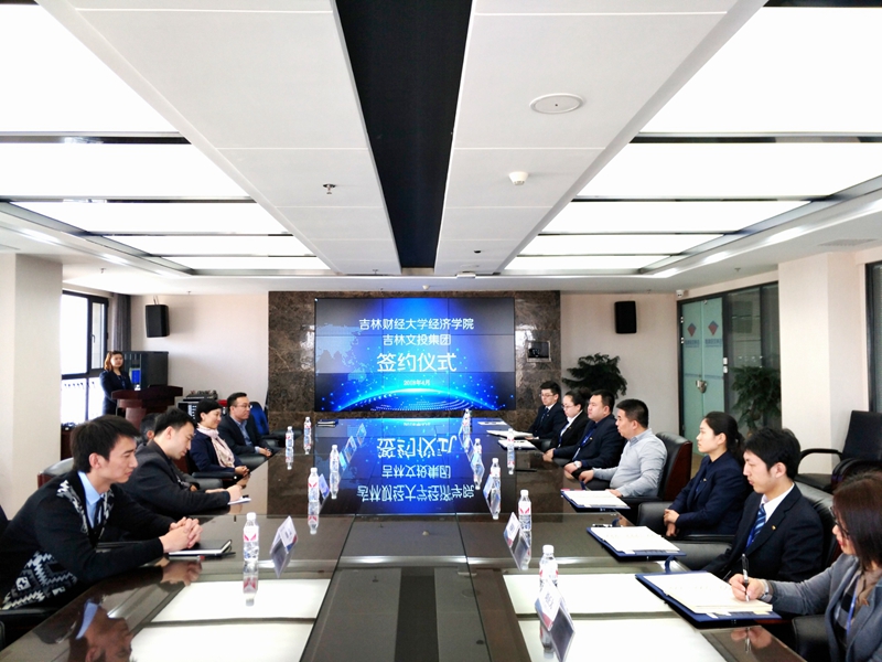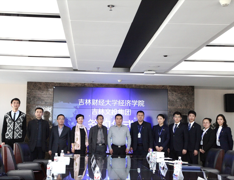 本网讯(经济学院 供稿)4月25日下午,经济学院与吉林省文化产业投资控股(集团)有限公司在恒丰国际大厦吉林文投会议室举行了合作共建签约仪式。经济学院领导班子和学生代表与吉林省文化产业投资控股(集团)有限公司董事长兼首席执行官张子毅、金融工作部总裁宫朋成、党委副书记高伟、金融工作部投资总监宋霄宇、金融工作部风控总监赵新宇、人力资源中心总监范秋影、文化产业事业部企划总管刘正大、董事会秘书赵婕等共同出席了签约仪式。