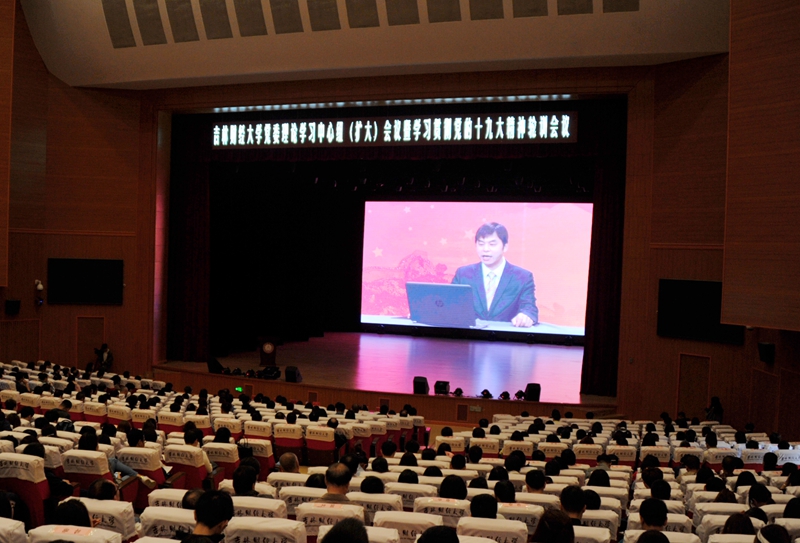 本次学习会议以影像教学的形式进行,学校领导、全体师生党员、副科级以上干部观看了首都师范大学石国亮教授的专题报告视频《不忘初心,牢记使命,是中国共产党一以贯之的追求》。在专题报告视频中,石国亮教授从六个方面作了讲解:一是党的十九大提出并概括了习近平新时代中国特色社会主义思想和基本方略;二是党的十九大作出中国进入社会主义新时代的新论断;三是党的十九大对新时代我国社会主要矛盾作出新的判断和概括;四是明确概括中国共产党的初心和使命,系统阐明“四个伟大”论断;五是提出新时代中国特色社会主义的战略安排;六是提出新时代党的建设总要求。