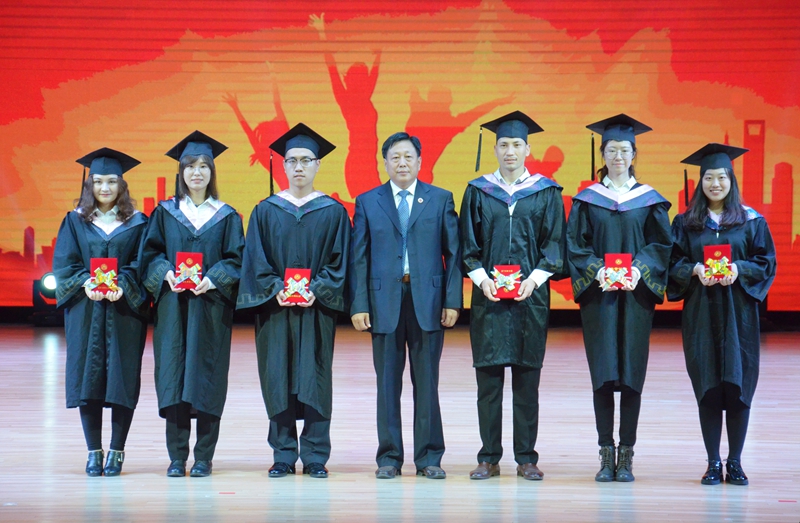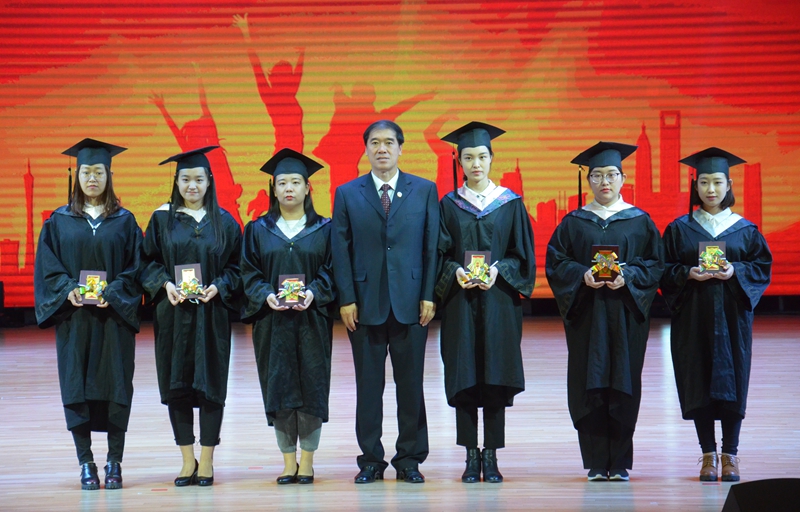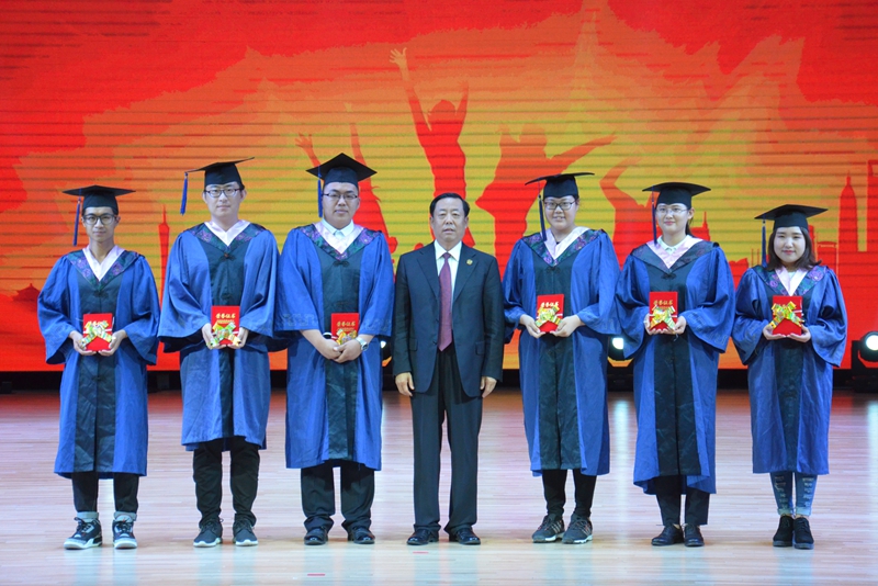 随后,在热烈的掌声中,校党委书记周知民为优秀毕业研究生代表颁发了荣誉证书;校党委常委、副校长张新宇为优秀本科毕业生代表颁发了荣誉证书;校党委副书记赵惠敏为优秀硕士学位论文作者代表颁发了荣誉证书;校纪委书记岳宏为优秀本科毕业论文作者代表颁发了荣誉证书;校党委常委、副校长孙长智为优秀毕业论文指导教师代表颁发了荣誉证书。