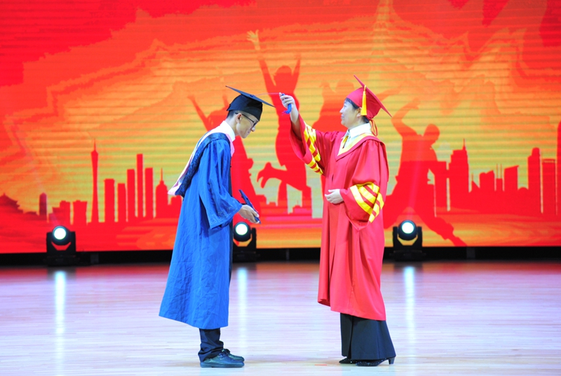 随后,张晶莹为毕业生代表们颁发了毕业证书、学位证书,扶正流苏并合影留念。2018届毕业生满怀喜悦的心情,从校长手中接过厚重的毕业证书和学位证书,他们在学校的光阴故事就此尘封;同时,2018届毕业生也将扬帆启航,去实现人生新的辉煌,书写人生新的华章。