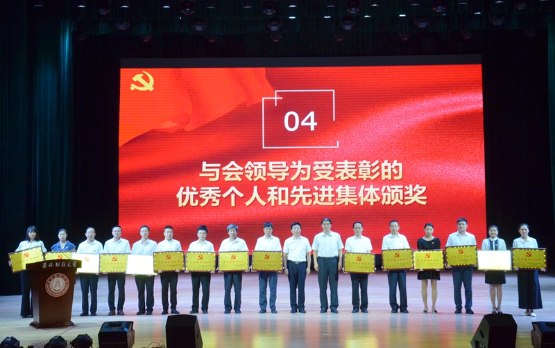 宣誓结束后,校党委副书记赵惠敏宣读了《关于表彰全校优秀共产党员、优秀党务工作者、优秀党支部书记、先进基层党组织的决定》。在热烈的气氛中,校党委书记周知民为优秀共产党员代表颁发了证书;校党委常委、副校长张新宇,校党委常委、副校长杨春梅为优秀党务工作者颁发了证书;校党委副书记赵惠敏、校党委副书记邹永亮为优秀党支部书记颁发了证书;校纪委书记岳宏,校党委常委、副校长孙长智为先进基层党组织颁发了奖牌。