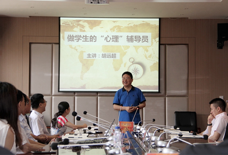 接着,吉林省仁爱心理保健职业培训学校校长胡远超以《做学生的“心理”辅导员——有关常见心理问题的分类、应对及沟通的小技巧》为题,从了解心理健康、大学生常见心理问题、大学生常见心理疾病和做学生的心理辅导员等4个方面为与会人员做了专题报告。报告中,他着重提到心理正常和心理异常的内涵以及区别,详细列举大学生常见的心理问题,主要讲述了心理问题状态的分类以及主要表现,其中大学生心理问题的主要表现体现在意志消沉、精神抑郁、性格孤僻等方面;大学生常见的心理疾病方面主要讲述了常见精神障碍的基本情况,对心境障碍和人格障碍展开阐述;做学生的心理辅导员部分,他指出,辅导员老师要掌握正确的教导方式、科学倾听的技术要点、指导学生正确人际交往的艺术、助人重建的语言模式等。报告中,他还生动形象的向全体辅导员老师传授了解决大学生心理问题的实用技巧和方式指南。