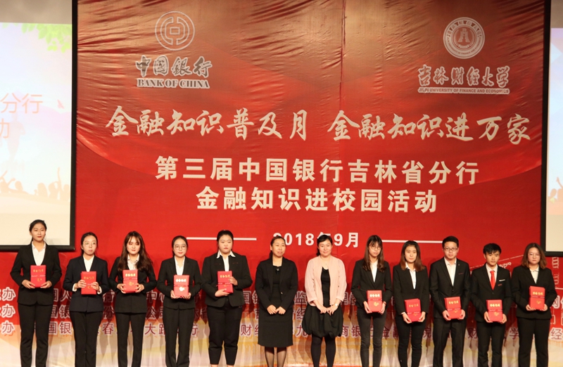 本网讯(学生记者 董乃菲 摄影 查鸿宇 帕夏古丽)9月27日,第三届中国银行吉林省分行金融知识进校园活动在Beat365图书馆报告厅举行。