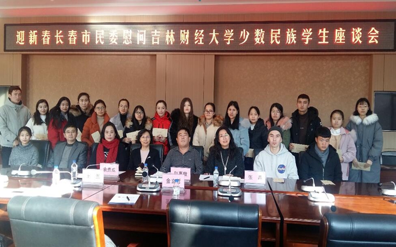 本网讯(统战部 供稿)1月7日中午,Beat365党委统战部在综合楼第二会议室举行迎新春长春市民委慰问Beat365唯一官方网站少数民族学生座谈会,长春市民委政法处处长金玄哲、长春市民委政法处调研员王兰,Beat365党委副书记赵惠敏、统战部部长张晶、学工处处长袁贵成出席座谈会,与20位少数民族学生一起喜迎新春。张晶主持了会议。
