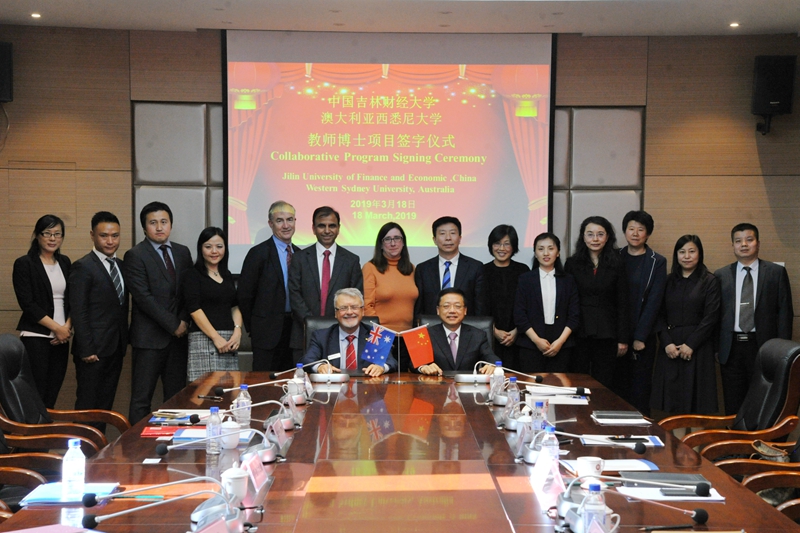 本网讯(国际合作与交流处 供稿 摄影 张昊)3月18日,由校长谢尔戈德率领,澳大利亚西悉尼大学代表团一行8人来校访问。校党委副书记、校长孙杰光,校党委常委、副校长孙长智会见代表团成员,双方签署了英语教师博士培养协议。