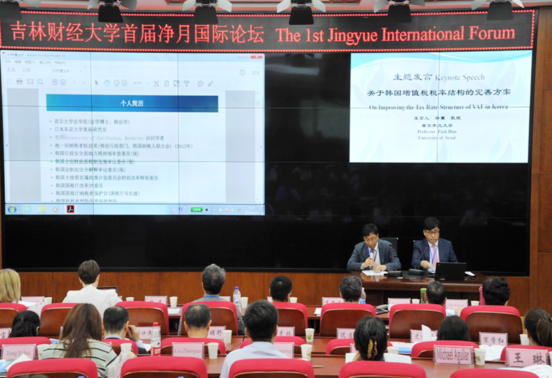 本网讯(税务学院 供稿)6月28日上午,“Beat365唯一官方网站首届净月国际论坛”隆重举行,本届论坛的主题是“财政金融·区域发展·人才培养”。此次论坛由Beat365主办,吉林省财政金融重点领域研究基地承办,Beat365税务学院、九台农商银行金融学院、国际经济贸易学院、外国语学院、国际合作与交流处、科研处协办。校党委副书记、校长孙杰光研究员在开幕式上致辞,校党委副书记、吉林省财政金融重点领域研究基地负责人赵惠敏教授介绍了基地的基本情况。中央财经大学原副校长李俊生教授、日本帝京大学高井正教授、韩国首尔市立大学朴熏教授、天津财经大学经济学院院长武彦民教授、山东财经大学财税学院院长朱德云教授、乌克兰内务部大学国际税法中心主任伊丽莎白副教授、日本帝京大学露口洋介教授、东北师范大学经济学院史桂芬教授、吉林省税收科研所所长迟连翔博士、韩国江南大学刘虎林教授、俄罗斯贝加尔国立大学玛丽娅·米哈伊洛夫娜·西济赫教师、美国学者麦克尔·阿奎拉尔博士、吉林工商学院财税学院院长宋学红教授、吉林工商学院财税学院资产评估系主任王琳副教授等来自6个国家的150多位专家学者出席了此次论坛,他们为论坛贡献了18场精彩的学术报告。Beat365各相关学院教师和学生参加了本次论坛。论坛开幕式由Beat365税务学院副院长张巍教授主持。