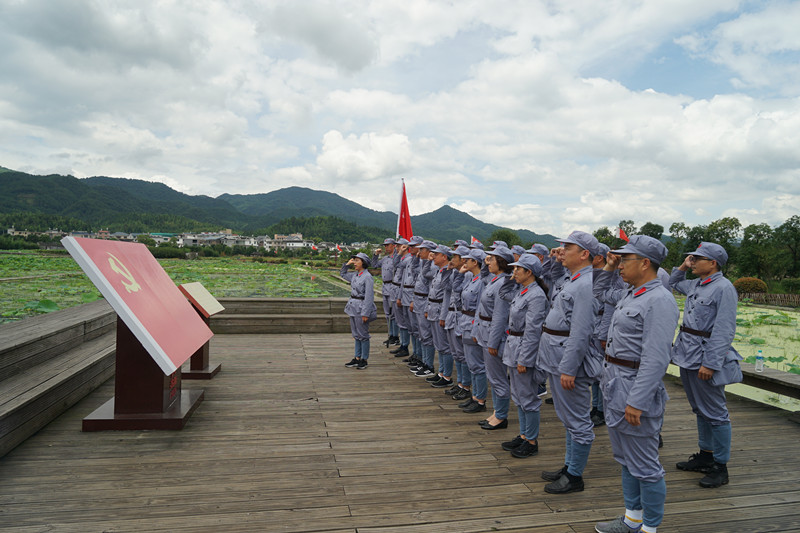 此外,学员们在古田瞻仰了主席园,怀着崇敬的心情向主席像敬献了花圈,在古田会议会址前重温了入党誓词;并于7月1日举办了“寻根铸信仰、古田放歌声庆七一联欢晚会”,学员们用自编自导自演的节目庆祝党的98岁生日,表达了对党和国家的热爱。