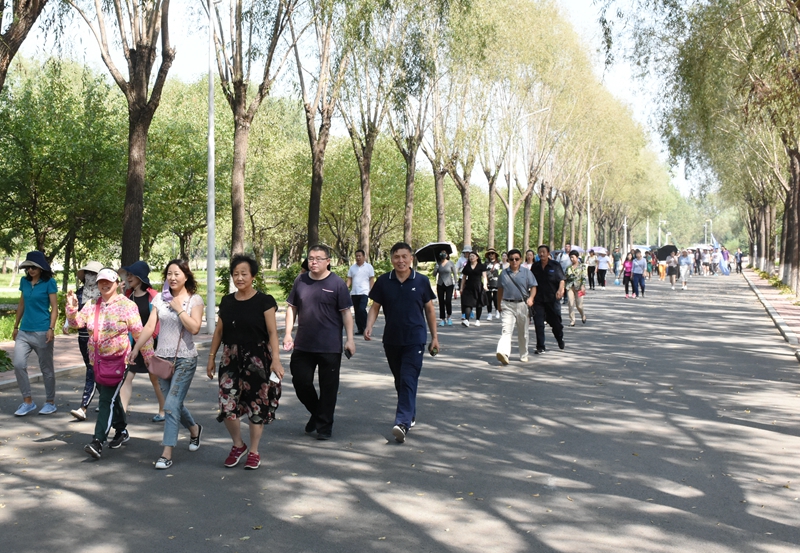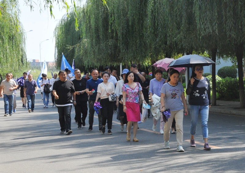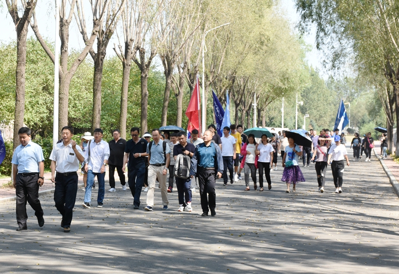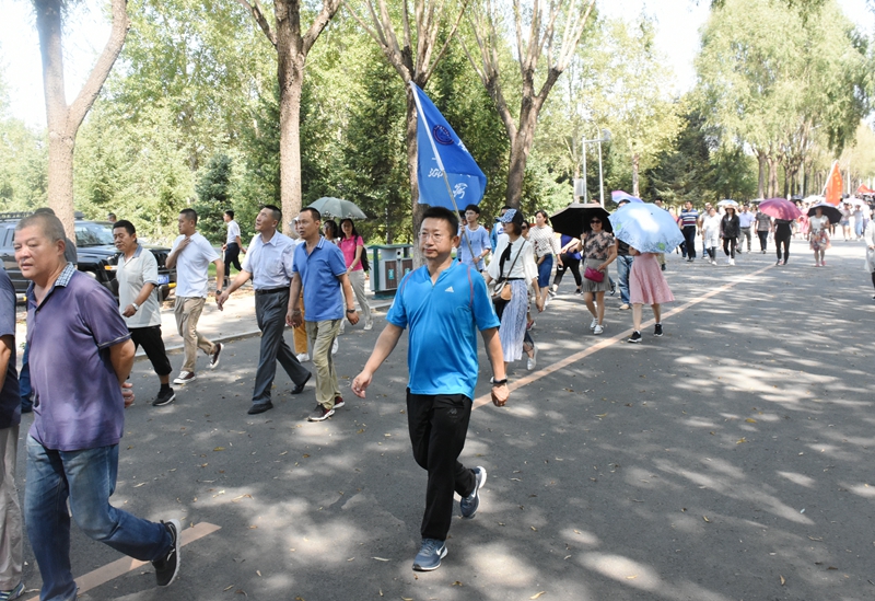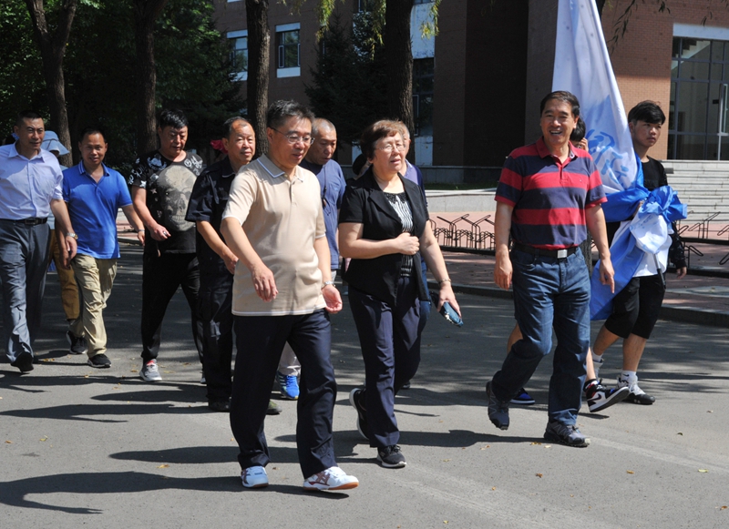 本网讯(学生记者 韩桂莹)9月4日中午,为庆祝新中国成立七十周年,喜迎第35个教师节,引导全体教职工树立科学的健身意识,建设一支活泼、文明、向上、充满生机与活力的教师队伍。校工会、校妇委会特别组织了“庆祝新中国七十华诞 弘扬新时代尊师风尚”——喜迎2019年教师节校园徒步活动。学校领导杨春梅、赵惠敏、邹永亮、岳宏、刘鹤、于金欢以及全校教职工参加了徒步行活动。