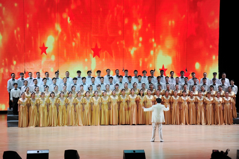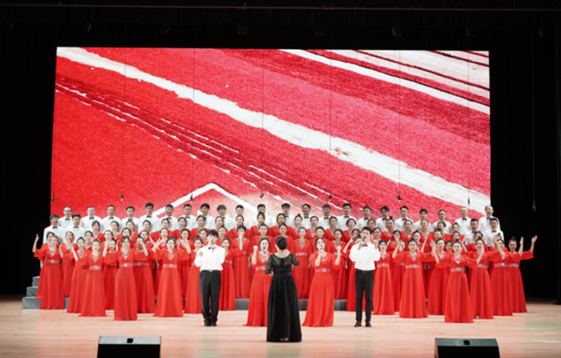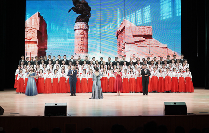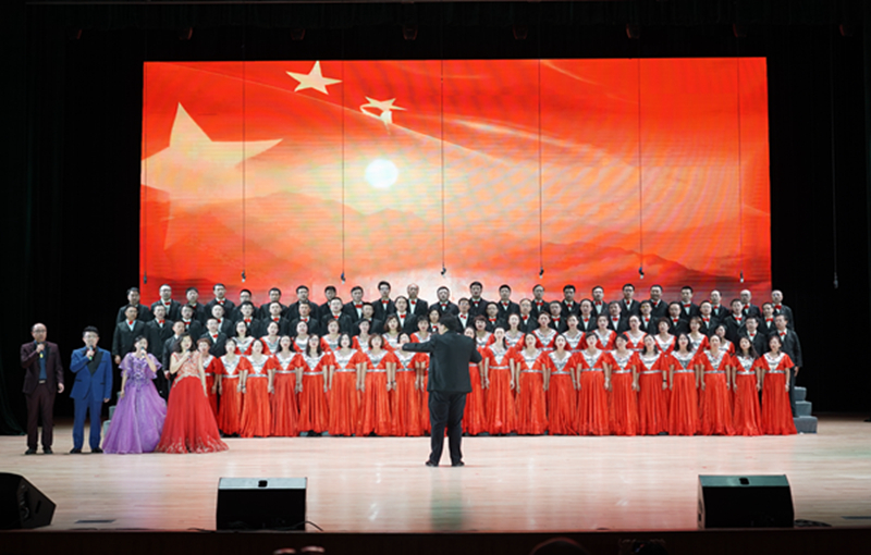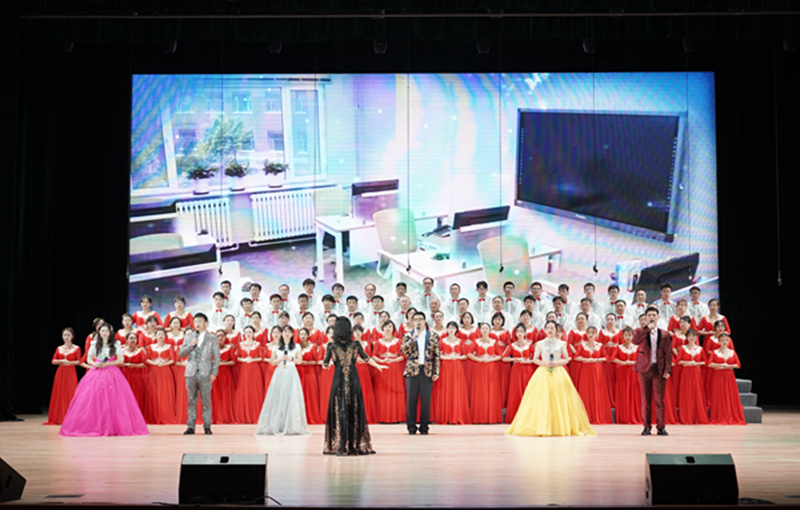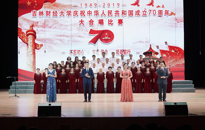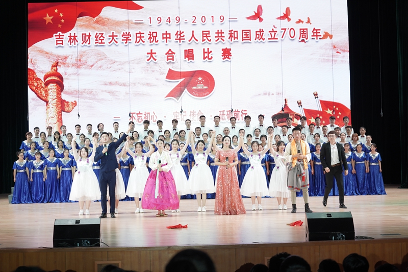 亚泰工商管理学院师生演唱了《歌唱祖国》和《明天会更好》。悠扬而婉转的歌声、鲜明的节奏、昂扬的乐曲唱出了中国共产党虽历经风雨,却风雨兼程;伟大祖国虽多经磨难,却砥砺前行。