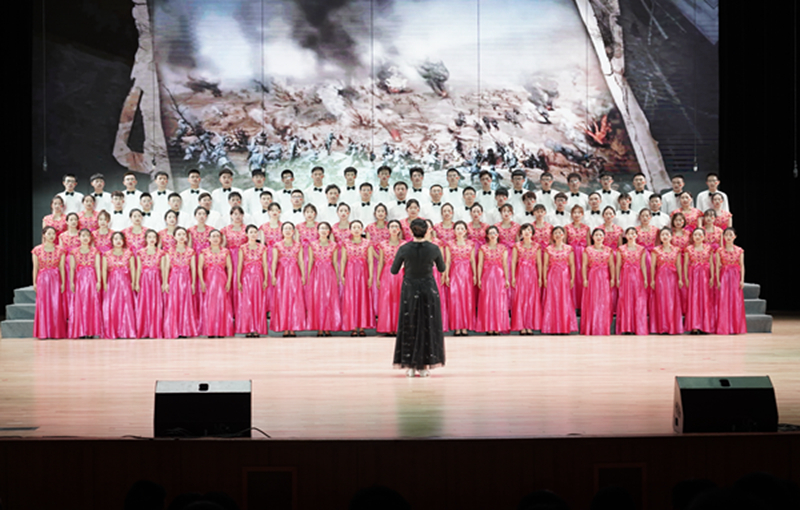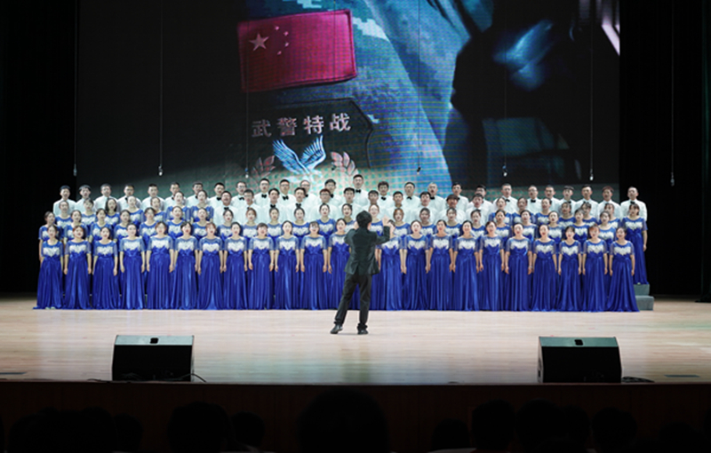 会计学院师生演唱了《我的祖国》。他们的歌声唱响了雄伟的井冈山,唱出了中国人民解放军的光荣革命传统。铿锵有力的《保卫黄河》,展现出了中国军人强军的坚定决心和豪情壮志!