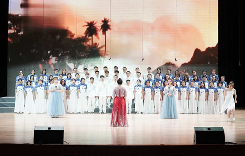 公共管理学院师生合唱的《我爱你中国》,表达了对祖国的深情热爱和对祖国的美好祝福。随后,演唱的歌曲《我和我的祖国》,更是表达出了绚烂的华夏文明,溢满中国人团结奋斗的豪情,吟唱出新时代繁荣富强的凯歌。