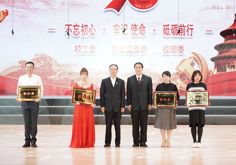 大合唱比赛中,学校领导登台与师生一起参加演唱,用歌声庆祝新中国成立70周年,用歌声共同祝福祖国明天更加美好。各单位也都高度重视此次大合唱比赛,从歌曲的选定、演出的队形、队员的服装、节目的内容和背景视频的选取等各个方面都做了精心细致的安排,并组织师生进行了认真的排练。