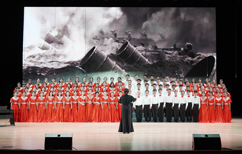 应用数学学院师生演唱的《团结就是力量》气势磅礴,激昂的歌曲让现场观众仿佛回到了那个战火纷飞时代,看到了英雄士兵们的激情澎湃!《我们走在大路上》朝气蓬勃,激励着吉财师生不断努力,向着未来前进。