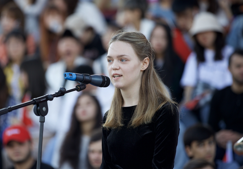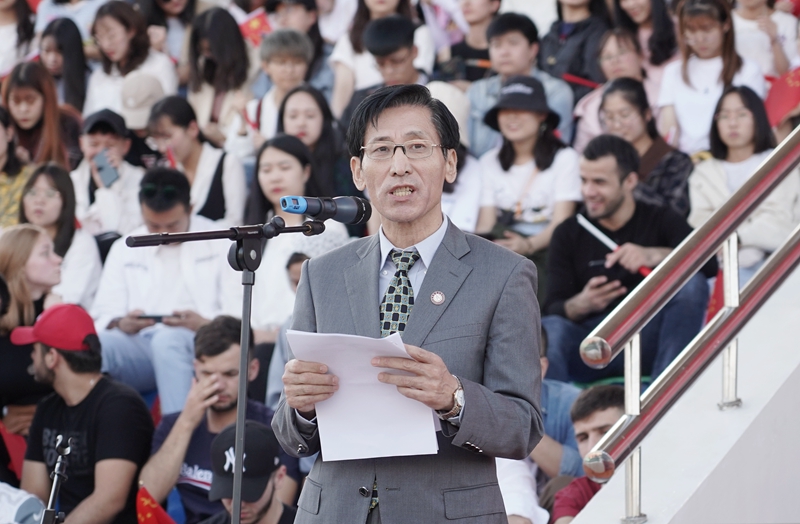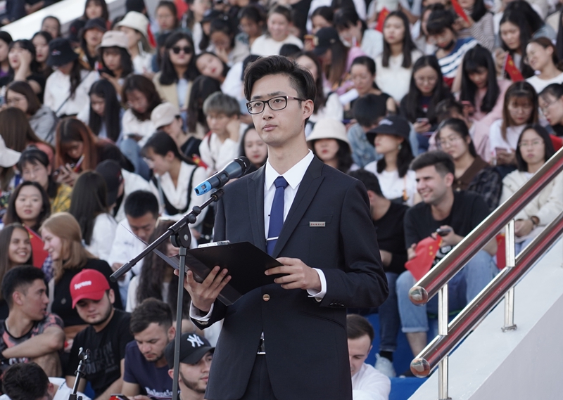 在校生代表、校优秀学生干部、优秀团干部、会计学院1731班侯力琦作为在校生代表进行了发言。新闻与传播学院1914班冯佳时作为新生代表进行了发言。俄罗斯留学生克里斯汀娜作为留学生代表进行了发言。