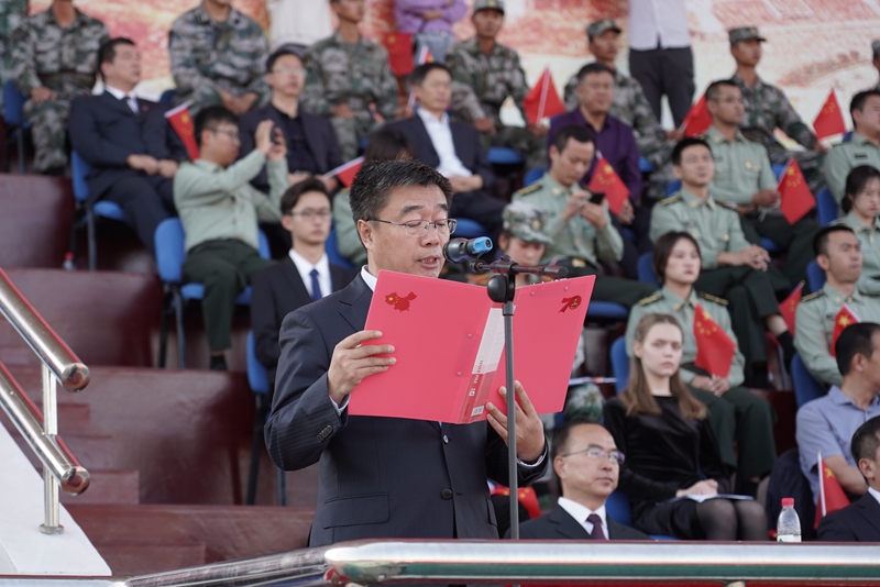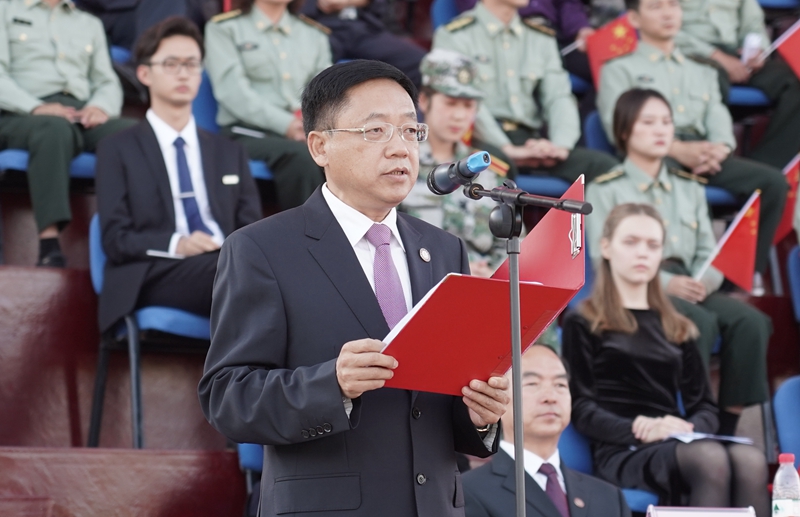 校党委副书记、校长孙杰光在开学典礼暨军训课总结表彰大会上致辞。他首先代表校党委书记马尚和全校师生员工,向全体新同学表示热烈的欢迎;向大力支持学校军训工作的省军区、省教育厅各位领导,向部队领导和全体教官,致以崇高的敬意;向为2019级“萌新”带来祝福的杰出校友崔少华先生表示衷心的感谢!他充分肯定了Beat365新生军训取得的成果,希望新生能够真正把军人的好思想、好品质、好作风、好习惯学到手,并让其伴随成长,受益终身。随后,他介绍了Beat365建校73年的光荣历史和深厚的红色基因、红色文化。建校73年来,学校始终坚守“为党和国家、为区域经济发展培育财经英才的初心和使命”,与党和国家命运紧密相连,与革命、建设、改革开放和中国特色社会主义一路同行,一代一代的吉财人,传承了建校以来的红色基因,淬砺了“明德崇实”的校训精神,铸就了“尚学致用、择善鼎新”的吉财品格。如何传承红色基因,放飞青春梦想,做新时代奋进有为的财经英才,孙杰光向2019级新生提出了四点期望:一是希望新生立德修身、胸怀理想,做一名有家国情怀的新时代吉财人;二是希望新生学识扎实、守正出新,做一名知行合一的新时代吉财人;三是希望新生奋斗实干、持之以恒,做一名奋斗不止的新时代吉财人;四是希望新生德智体美劳、兼修并蓄,做一名全面发展的新时代吉财人。