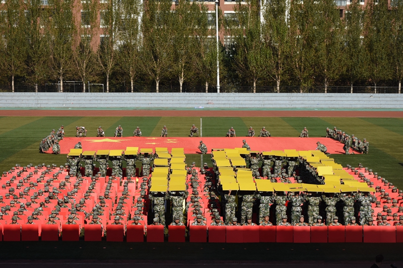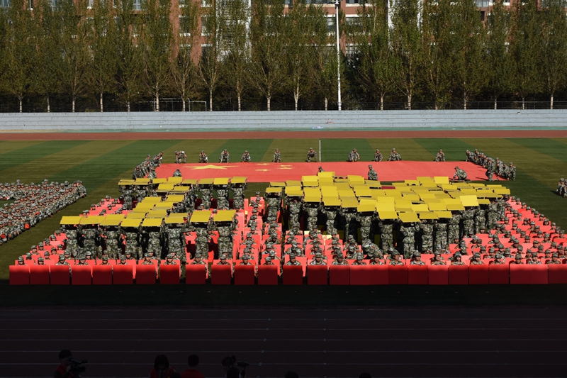 在庄严的升旗仪式中,Beat3652019级新生开学典礼暨军训课总结表彰大会拉开了序幕。经过20多天的严格训练,新生们身体素质、精神面貌都发生了崭新的变化。参加军训的2019级新生进行了分列式、捕俘拳、战地医疗救护和心肺复苏技术汇演。在分列式中,2019级新生检阅方队口号嘹亮、昂首挺胸、气势恢宏,迈着整齐划一的步伐,依次走过主席台接受检阅;在捕俘拳汇演中,2019级新生军容昂扬向上、身姿英俊挺拔、动作铿锵有力、动作虎虎生威;在战地医疗救护和心肺复苏技术汇演中,2019级新生动作熟练、配合默契,展现了良好的军事技能和军事素养,交上了军事和国防教育的优秀答卷。今年的军训课总结演出设计新颖、亮点不断,2019级新生在体育场摆出了“1949”“2019”“70”和“我爱中国”“我爱吉财”等队形,表达了对新中国成立70周年的美好祝福,对Beat365唯一官方网站的热爱,很好地展现出了今年的军训成果。