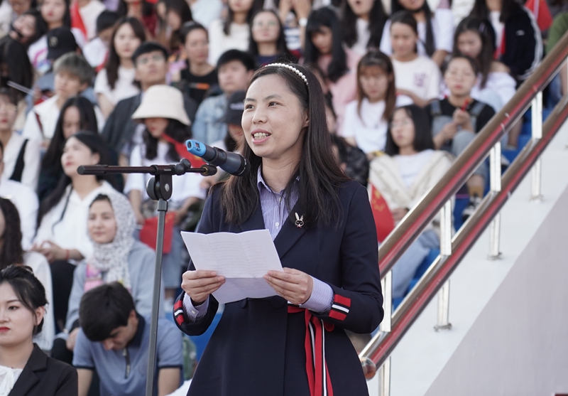 吉林省优秀教师、金融学院副院长王丽颖教授代表全体教师作了发言,对如何度过大学生活,向2019级新生提出了三点希望:第一,正确定位,做好规划;第二,珍惜光阴,勤奋学习;第三,爱国、爱家,勇于担当。