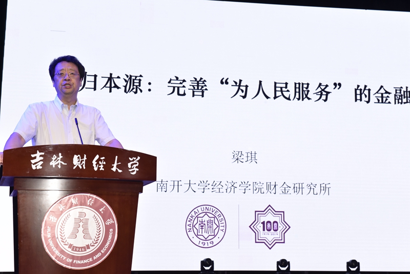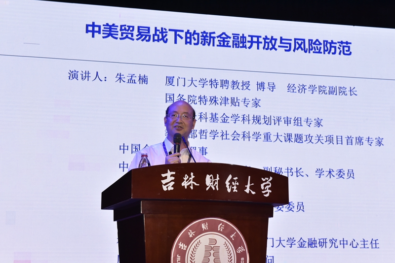 在第一场主题报告中,两位主讲嘉宾从宏观层面以不同角度分析了当前我国金融业发展的趋势走向,面临的机遇、挑战,并提出应对之策。首先,由南开大学人文社会科学研究部部长梁琪教授做题为《回归本源:完善“为人民服务”的金融》的报告,梁教授以中国对世界经济增长的贡献率为切入点,深刻分析了我国在世界经济发展中的重要地位,结合我国金融工作的四大原则和三项任务,提出了我国金融应该何去何从的问题。随后,厦门大学经济学院副院长朱孟楠教授的主题报告《中美贸易战下的金融开放与风险防范》,为大家解读了新金融开放的内涵特点与具体内容,分析了新金融开放可能带来的各种风险,并提出应对策略。两位教授的报告鞭辟入里、真知灼见,尽显家国情怀。