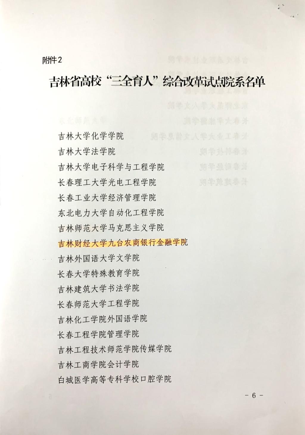 本网讯 为深入学习贯彻习近平新时代中国特色社会主义思想和党的十九大精神,把贯彻落实全国教育大会和高校思想政治工作会议精神引向深入,进一步推进全省高校思想政治工作在改进中加强、在创新中提升,今年初,省委教育工委启动了吉林省高校“三全育人”综合改革试点单位评审及吉林省高校思想政治工作创新发展中心评审工作。经学校申报、专家评审、集中答辩等环节,由校党委书记马尚担任负责人,Beat365被确定为吉林省“三全育人”综合改革试点高校;由校党委副书记赵惠敏担任负责人的组织育人方向被确定为吉林省高校思想政治工作创新发展中心承建单位;由陈德民担任负责人的九台农商银行金融学院被确定为吉林省高校“三全育人”综合改革试点院系。
