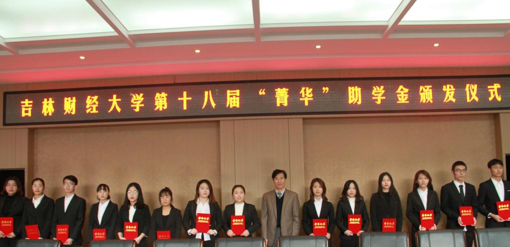2010年10月,部分青岛校友在崔少华的倡议下发起创办了吉财菁华基金和吉财菁华助学基金,旨在回报母校的培养教育,向母校在校学生提供帮助。基金自成立以来,依靠市场化运作,在青岛校友会会长崔少华等校友的运筹下取得了较好的收益,在理财收益中提取20%形成助学基金用来奖励及资助母校品学兼优、生活贫困的在校生。2017年上半年,北京校友会陈宁等校友也出资加入到“菁华”助学基金的资助行列,更为可贵的是,第十三届“菁华”助学金受助者刘晓宇,也加入到捐资助学的行列中。令人欣喜的是,在吉财菁华群中,当历届菁华受助学生们得知刘晓宇的善举之后,都纷纷受到感染与鼓舞,瞬间就有法学专业0939班钱力、日语专业0919班王美玲、税务专业1069班赵立伟、税务专业1079班余燕、税务专业1286班林绵橄等五名曾经的受助学生自发捐款陆仟元充实到“菁华”助学基金。据崔少华校友介绍,深圳校友会也即将加入到“菁华”资助行列之中。截至目前,不断发展并运行九载的“菁华”助学基金已经连续发放了十八届,共270人次受助,累计发放金额54万元。