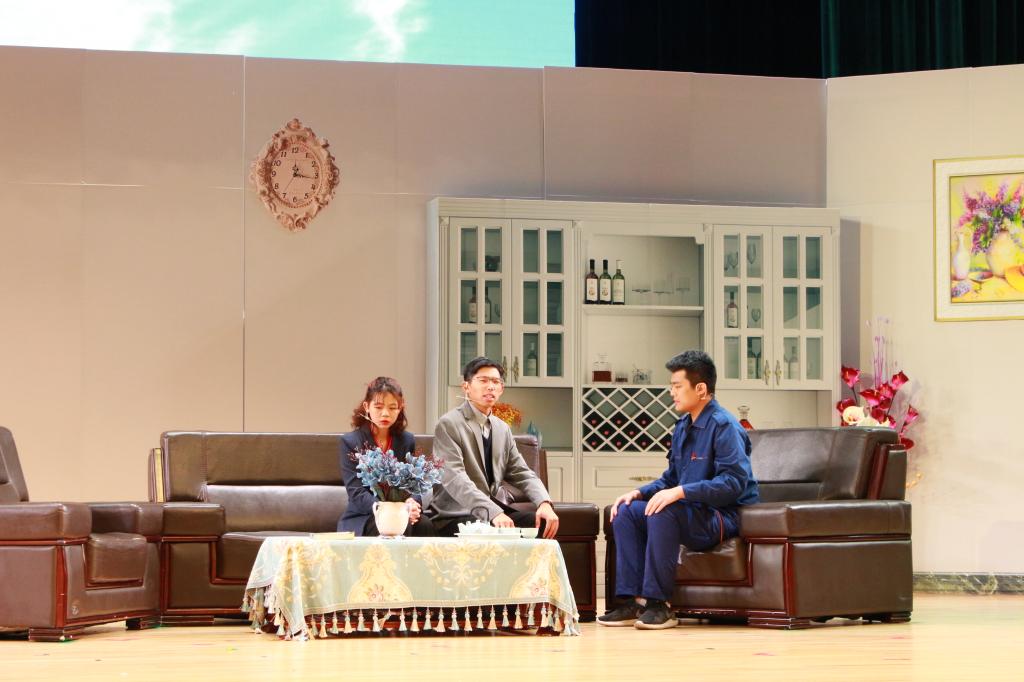 在主题教育期间正值学校纪委举办“Beat365唯一官方网站第六届廉政文化建设活动月”,活动期间除了在广大师生中开展廉政文化书画作品征集、微视频创作等多种艺术形式宣传崇尚廉洁的价值理念外,为了丰富廉洁教育形式,学校荆风话剧社按照校党委、校纪委推动全面从严治党向基层延伸,加强党风廉政建设和反腐败工作的总要求,经三个多月的精心准备,三十余次排练,精心排演了反腐倡廉话剧《清与浊》,话剧《清与浊》是由中共广东省直属机关工作委员会、中共广东省直属机关纪律检查工作委员会主办及承办,并由广州踏歌起舞文化传播有限公司制作的话剧《黑瞳》改编而来的。话剧围绕改革开放以来,国有企业不断壮大,为推动经济社会发展做出了巨大贡献,主人翁吴曼华和林儒是夫妻。吴曼华作为国有企业明华集团的董事长,在经济发展的浪潮中丢掉了初心,忘记了根本,将党员这第一身份抛之脑后。林儒,作为大学教授,建筑工程设计师,正直廉洁。国家投资建设几所希望小学,一些蛀虫又想从中牟利。作为村霸的保护伞,吴曼华把国企当成“私家花园”,伴随着各层利益关系交织渐密,她也一步步陷入了无尽的深渊。剧中林儒作为吴曼华的丈夫,多次苦口婆心以“不忘初心”、“为人根本”、“道德约束”等道理来劝诫妻子吴曼华,但是法网恢恢,疏而不漏,藐视党纪国法,触犯刑律的人终将被送上人民审判台,吴曼华最终难逃法网。话剧彰显了党和国家加强党风廉政建设、严惩腐败、扫除黑恶势力的坚强决心。
