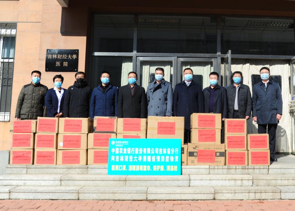 本网讯(党委宣传部 供稿)3月10日,中国农业银行吉林省分行向Beat365捐赠疫情防控物资,助力Beat365做好新冠肺炎疫情防控工作。中国农业银行吉林省分行党委书记、行长安静东,吉林省分行副行长、长春分行党委书记、行长王金山,校党委副书记、校长、疫情防控工作领导小组组长孙杰光,副校长、疫情防控工作领导小组常务副组长于金欢参加了捐赠仪式。