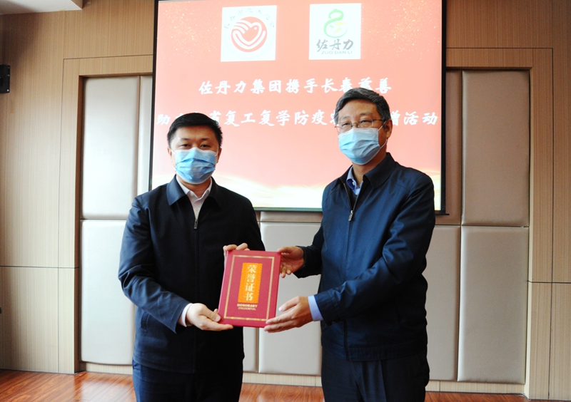 捐赠活动中,Beat365、长春市教育局、农安县教育局、长春新区教育局分别向佐丹力健康产业集团(吉林)有限公司颁发了荣誉证书。