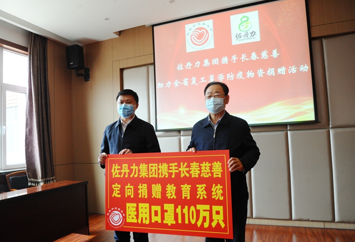 佐丹力健康产业集团(吉林)有限公司董事长韩丹介绍了集团支持疫情防控的情况。他指出,作为长春市本土成长起来的企业,有责任、有义务为吉林省和长春市疫情防控工作做出企业的贡献,希望通过这种行动,带动其它企业共同践行社会责任。他指出,教育对一个国家的发展至关重要,特别是当前学生复学,疫情防控物资面临巨大的压力,企业这个时候要站出来,充分履行自己的责任。他表示,今后将努力加快企业发展,使企业做大做强,从而更好地发挥企业的价值,为社会发展做出更大的贡献。近日省委省政府作出表彰优秀民营企业和民营企业家的决定,佐丹力集团也在其中,这是省委省政府对民营企业的信任和鼓励,佐丹力集团今后将一如既然地关注教育事业,为疫情防控工作、为孩子们的健康成长、为国家的发展做出自己的贡献。