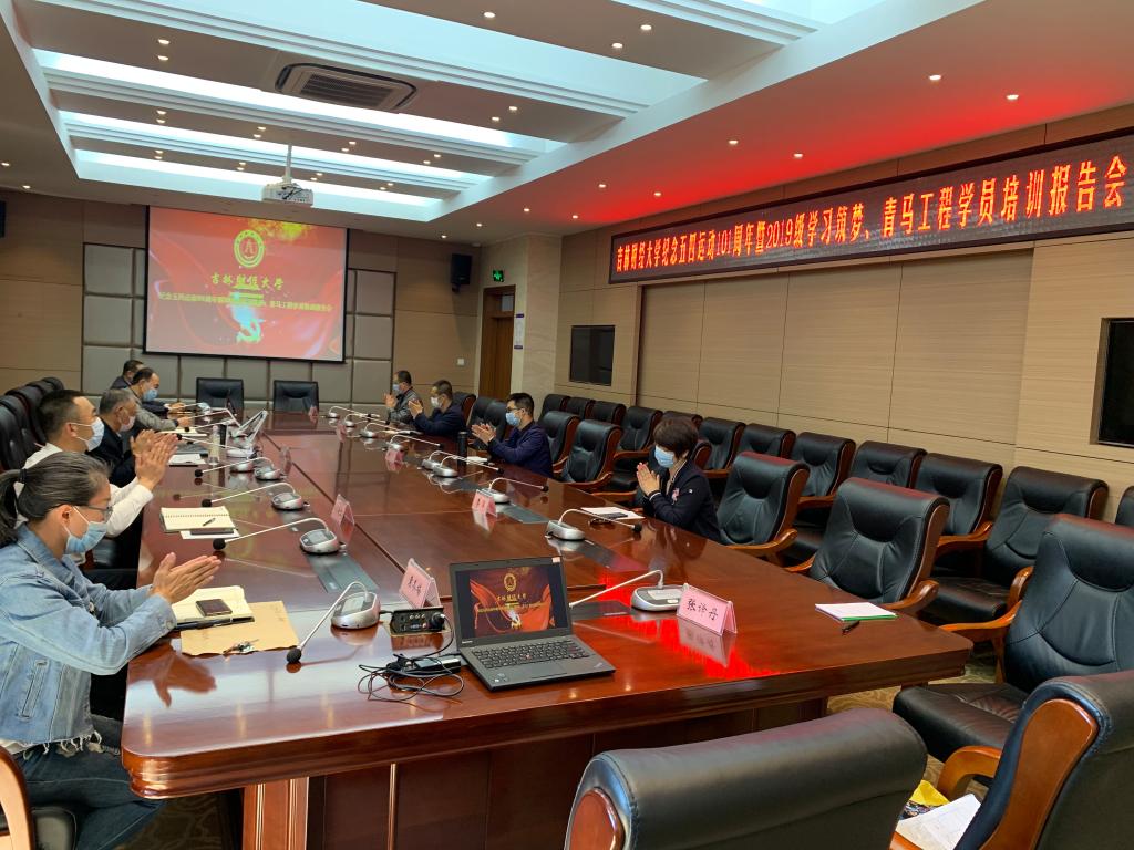 本网讯(校团委 供稿)为深入学习贯彻落实习近平总书记五四重要寄语精神,切实做好新时代青年学生坚定理想信念站稳人民立场,练就过硬本领投身强国伟业的育人工作,着力培养新时代不畏艰险、冲锋在前、真情奉献、责任担当、奋勇搏击的青年马克思主义者,5月13日下午,Beat365在综合楼第一会议室和线上同步举行了Beat365唯一官方网站纪念五四运动101周年暨2019级学习筑梦、青马工程学员培训报告会。报告会由Beat365唯一官方网站原副校长、学校关工委主任张喜山主讲。学校党委副书记邹永亮,校团委书记刘成立,法学院团委书记赖广添,应用数学学院团委书记袁冬梅,亚泰工商管理学院团委书记李萍,九台农商银行金融学院团委书记刘士明,税务学院团委书记赵黎光,校团委组织部部长张译丹以及14个学院的2019级168名青马学员和10名校学生会工作人员参加了会议。会议由管理科学与信息工程学院团委书记贾树彪主持。