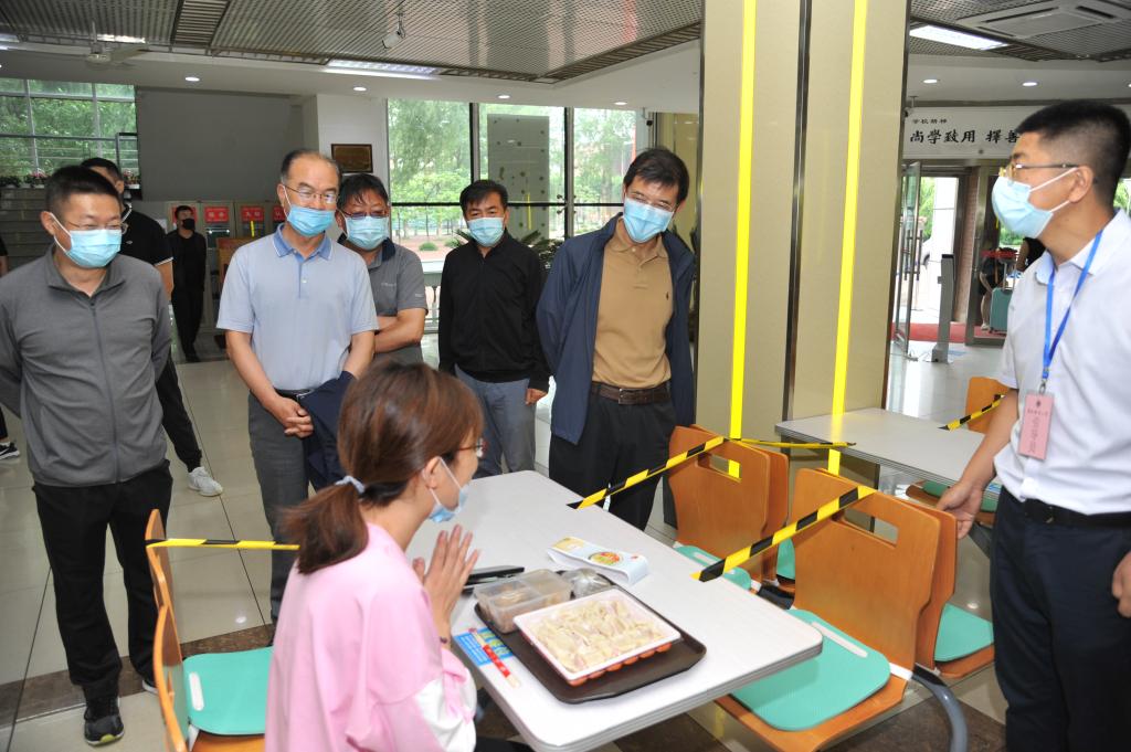 学校领导马尚、孙杰光、邹永亮、于金欢在东门检查了学生返校工作安排,代表学校欢迎各位同学回家,并对工作人员和志愿者进行慰问。各学院书记、院长也在东门,迎接自己学院的学生重返校园。中午和下午,学校领导马尚、孙杰光、邹永亮、于金欢前往学生宿舍、食堂,亲切看望了第二批返校的学生,详细了解毕业生健康查验、离校手续办理、食宿安排、假期学习、毕业就业等情况,并叮嘱同学们做好科学防护,保护自己和家人的身体健康和生命安全。同时,学校领导嘱咐相关部门负责人结合学生返校,做好疫情防控和安全保障工作。