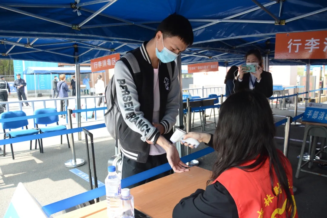 今年迎新工作地点设在学校南门,并在火车站和机场设置了新生接待点。为了统筹做好新生报到和疫情防控工作,学校精心做了安排和布置,在南门报到点,2020级新生通过入校通道进行体温测量、消毒、“吉祥码”和“通信行程码”查验、“报到码”扫描确认。随后,新生在迎新志愿者的陪同下取行李进入宿舍,并陆续办理绿色通道、学费缴纳、户籍迁移等相关事宜。