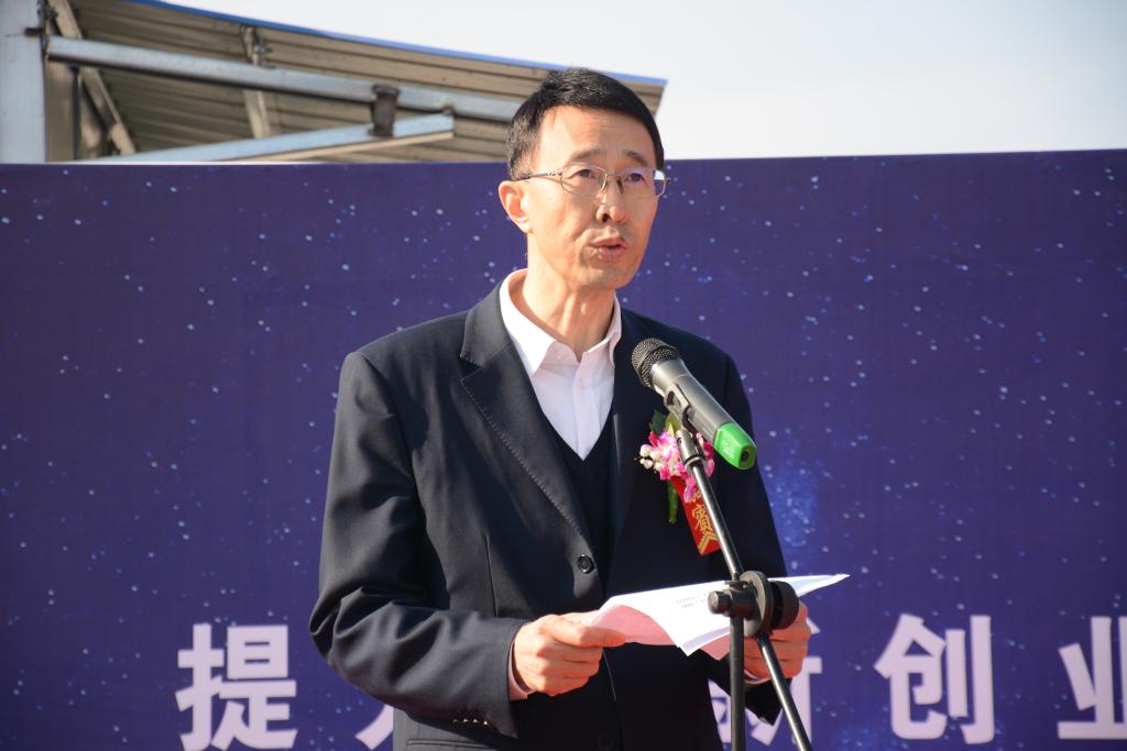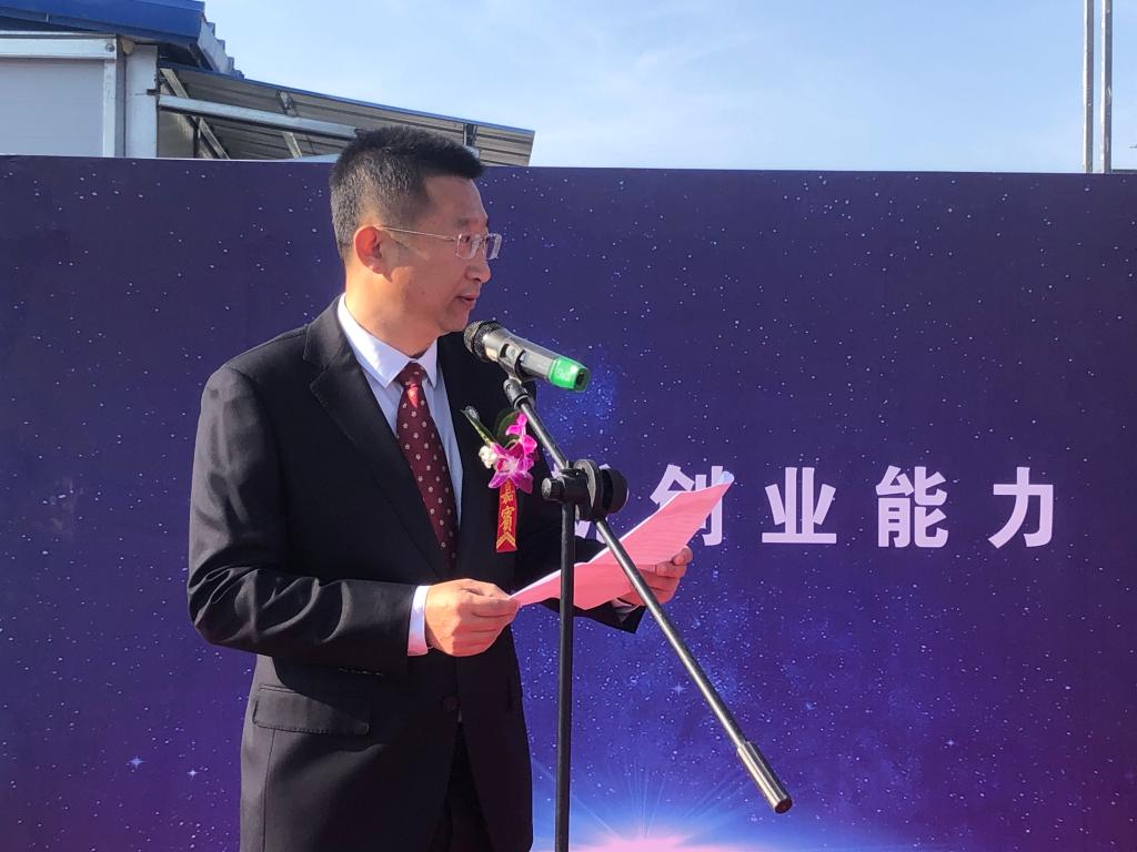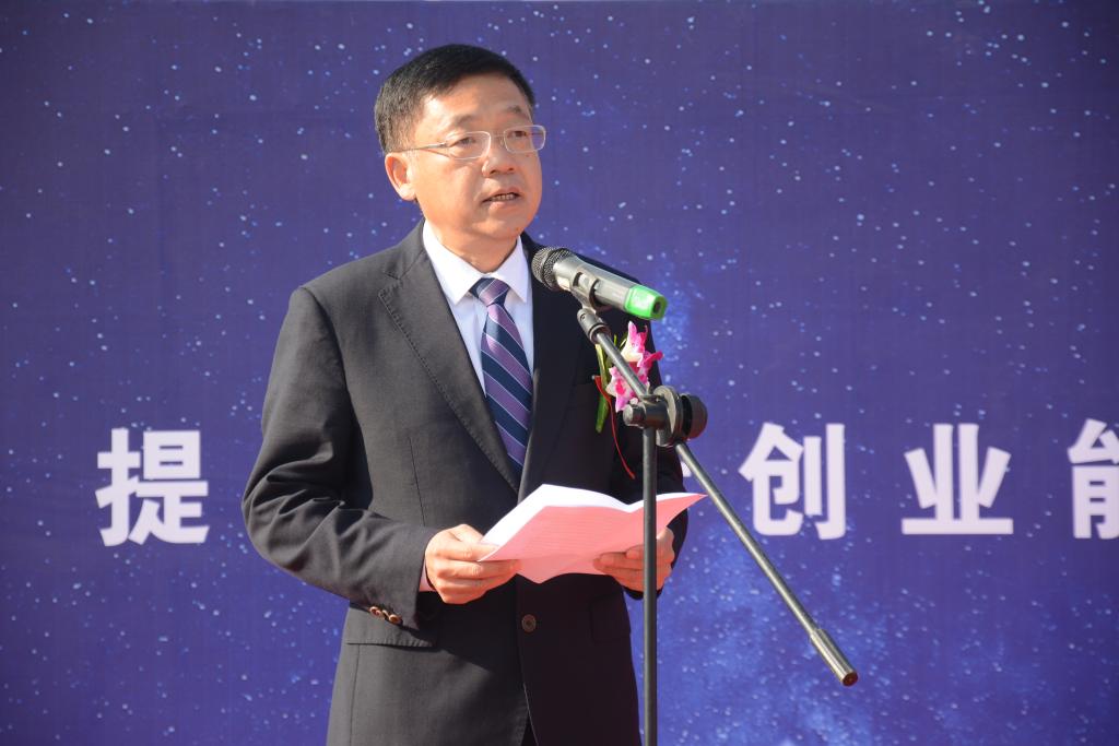 净月高新区党工委副书记孙洪健致辞,他希望政校双方以实训大楼奠基建设为起点,共同推动合作关系纵深发展,实现政校资源再整合、创新发展再提升、政校合作再深入。净月管委会将紧密跟踪实训中心建设,全方位、全过程抓好服务,确保项目建设扎实推进、安全完工。