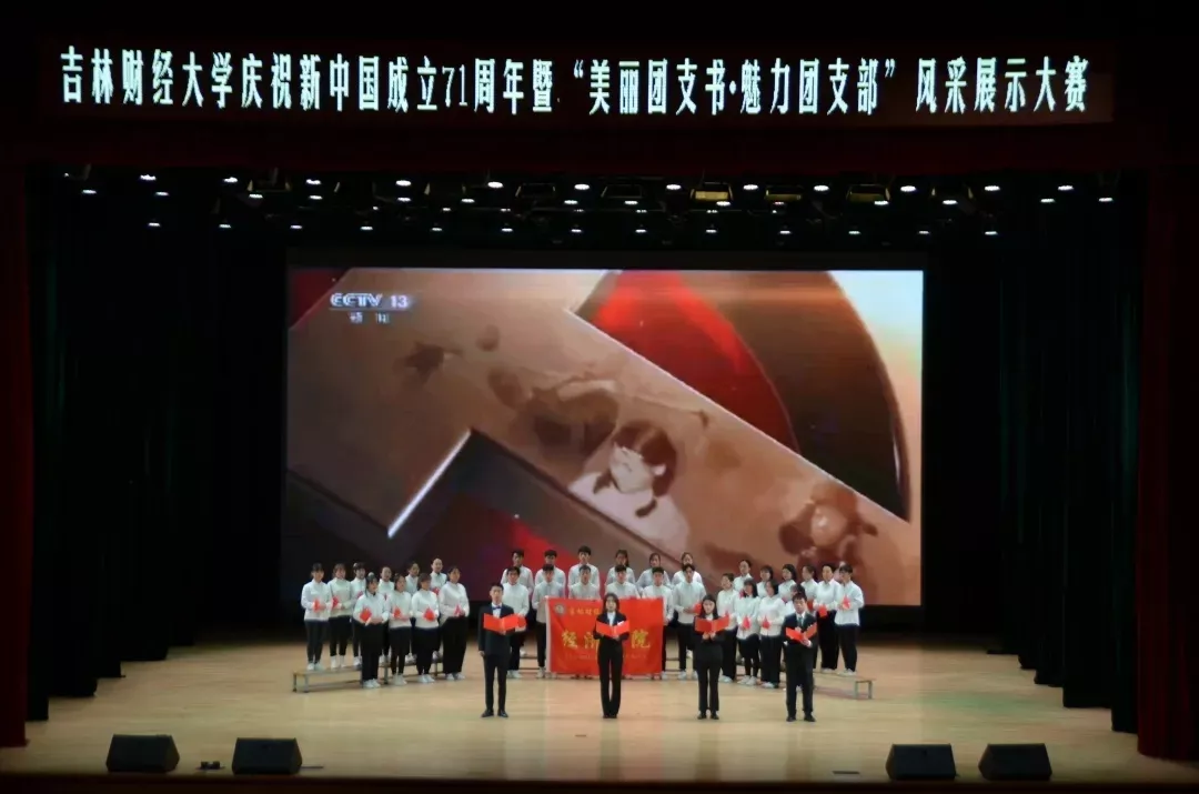 活动的第二部分是“广泛传播新思想——团支部精品主题团日活动展示”。10月28日下午,由共青团Beat365唯一官方网站委员会主办,校学生会承办的Beat365唯一官方网站庆祝新中国成立71周年暨“美丽团支书•魅力团支部”风采展示大赛在多功能学术中心顺利举办。国际经济贸易学院团委书记遇言、会计学院团委书记王萌、九台农商银行金融学院团委书记刘士明、国际交流学院团委书记杜金亮、税务学院团委书记赵黎光、统计学院团委书记郭妍、亚泰工商管理学院团委副书记许家铭、外国语学院团委老师续成林、应用数学学院团委老师马潘超、公共管理学院团委老师刘亭、法学院团委老师马冬梅、新闻与传播学院团委老师付诗雯担任本次大赛的评委。各学院推荐的团支部分别从铭记历史、砥砺前行、打赢疫情防控阻击战、纪念抗美援朝战争出国作战70周年、暑期返家乡社会实践等方面感悟祖国强盛,感受奋进青春,他们用悠扬婉转的舞蹈、深入人心的歌声表达了对祖国的祝福、对家乡的热爱、对未来的期盼。丰富的团支部活动和激情四射、拼搏进取的良好风貌进一步彰显了吉财青年不忘初心、牢记使命的家国情怀,受到了与会青年的一致好评。