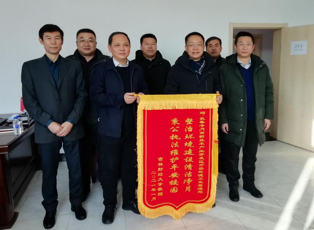 随后,学校领导一行来到了净月高新区市容环境卫生管理局,与管理局局长曹阳、副局长李国才进行了座谈,并赠送了锦旗。