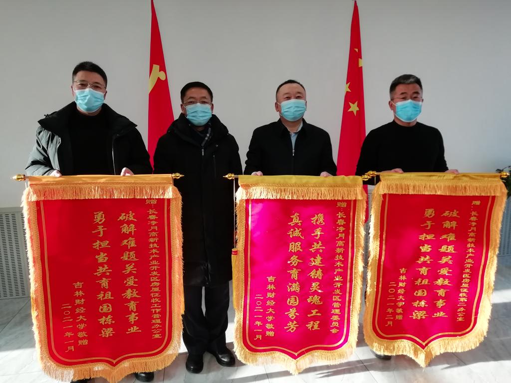 座谈结束后,学校领导向净月高新区管委会赠送了锦旗。