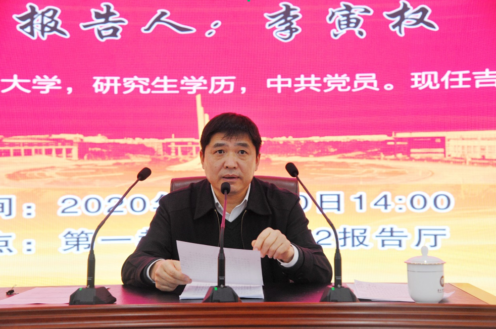 本网讯(科研处 供稿)近日,吉林省人民政府研究室主任李寅权研究员应邀做客“吉林财经大讲堂”,在吉林财经大讲堂报告厅解读了党的十九届五中全会精神。随后,Beat365安明友、景玉琴、魏旭、蔡强、张巍、姜建华、沙颖等七位专家学者在中央及省委经济工作会议精神研讨会上作了主题发言。报告会及研讨会由校党委副书记、校长孙杰光主持,科研处及相关学院领导、教师代表参加了会议。