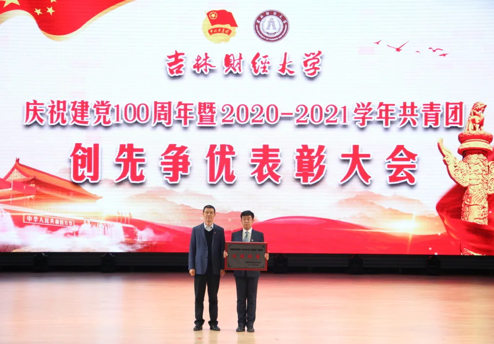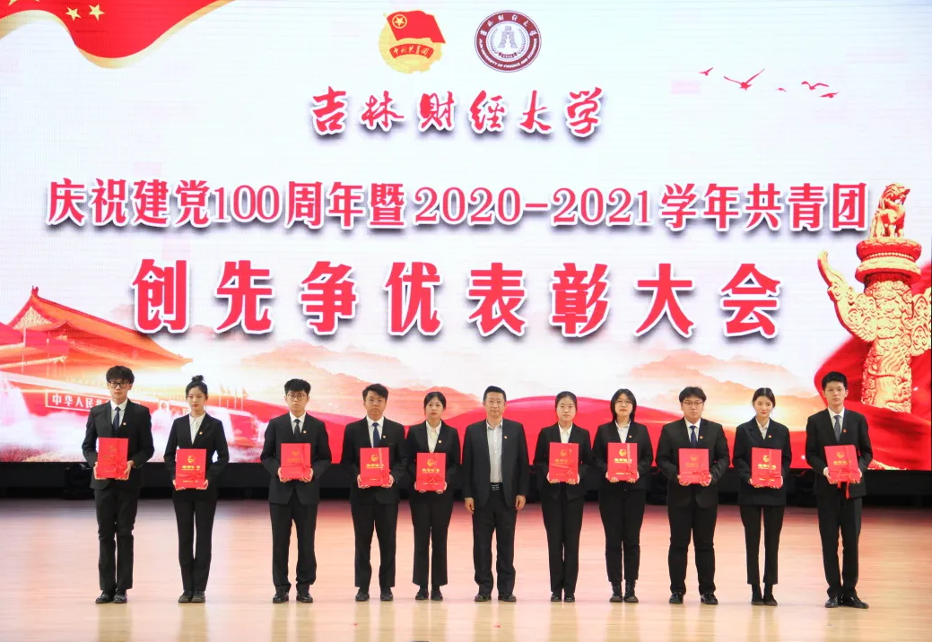 最后,校党委副书记邹永亮在大会上发表了讲话。邹永亮代表学校党委向全校青年致以节日的问候,对学校各级团组织在过去一年里的工作给予肯定,向受到表彰的先进集体及个人表示祝贺。他说,在学校党委的坚强领导下,全校各级团组织讲政治、明方向、凝人心、强本领,真情奉献、攻坚克难,广大青年学生学党史、强信念、听党话、跟党走,锐意进取,砥砺奋斗,以不懈奋斗只争朝夕的昂扬姿态和不畏艰险真情奉献的担当精神,始终走在时代的前列,用自己的实际行动诠释了“党有号召、团有行动”的优良传统,谱写了一曲曲动人的青春赞歌,展现了吉财学子最亮丽的青春底色。他最后向全校青年提出四点希望:一是立鸿鹄志,做奋斗者。广大青年要爱国爱党,从党史学习教育中激发信仰、获得启发、汲取力量,树立为祖国为人民永久奋斗、赤诚奉献的坚定理想。要锤炼品德,自觉用中华优秀传统文化、革命文化、社会主义先进文化培根铸魂、启智润心,加强道德修养,明辨是非曲直,增强自我定力,矢志追求更有高度、更有境界、更有品位的人生;二是兴尚学风,做善学者。广大青年要善于学习,坚持把学习作为一种责任、一种精神追求,学用结合、知行合一,让勤学善思实干成为青春飞扬的动力。要勇于创新,深刻理解把握时代潮流和国家需要,敢为人先、敢于突破,以聪明才智贡献国家,以开拓进取服务社会。要实学实干,脚踏实地,在攀登知识高峰中追求卓越,在肩负时代重任时行胜于言,在真刀真枪的实干中成就一番事业;三是雕瑚琏器,做正气者。广大青年要担负起新时代赋予的重任,在新产业、新业态、新模式上各展所长,努力成为可堪大用、能挑重担的栋梁之才。要立足岗位、创先争优,把高质量发展作为建功战场,在勤学苦练中不断增长人生智慧,在拼搏进取中不断磨练意志品质。要培养批判精神、解放思想、大胆尝试,形成敢于突破、敢为人先、勇立潮头的创新风气,用朝气蓬勃的力量,为高质量发展注入更多青春动能和奋斗气质;四是修高尚德,做追梦者。广大青年要修好个人之德,培育高尚道德情操,传承优良传统,自觉树立和践行社会主义核心价值观。要修好职业之德,以敬畏之心对待党和人民的事业,始终同党和人民站在一起,自觉做中国特色社会主义的坚定信仰者和忠实实践者。要修好社会之德,主动承担社会责任,树立文明新风,弘扬社会正气,传播正能量,唱好青春“好声音”,以青年品格铸就时代品格。