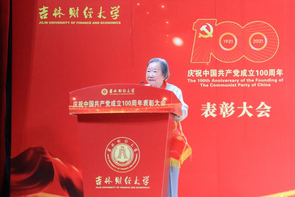 “光荣在党50年”纪念章获得者、党龄67年2个月、90岁高龄的杨慧瑾代表老同志发表感言。她说,在党的百年华诞即将来临之际,获得了“光荣在党50年”纪念章,感到无比荣幸和自豪,这体现了以习近平同志为核心的党中央对老党员的重视、关心和牵挂,也是对我们的鞭策和鼓励,是自己生命航程中一个新的里程碑,将永远铭记、无比珍惜!她深情回顾了自己在党的培养和教育下的从教经历,勉励青年党员要挑起重担,发挥共产党员的先锋模范作用,不负韶华,建功立业,为中华民族的伟大复兴做出更大的贡献。