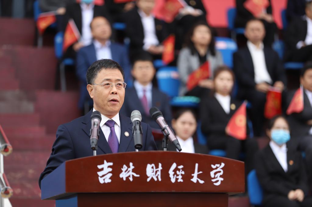 他指出,2021年是中国共产党成立100周年,正是在中国共产党的领导下,祖国才有了今天的繁荣昌盛,无论是过去、现在还是将来,我们的命运都与祖国的繁荣富强紧紧相连。2021级新生是海内外十多万吉财人中最新鲜的血液,吉财因此而更加生机勃勃。作为新时代的青年人,更应不负时代,不负韶华,肩负起党和人民的殷切希望。