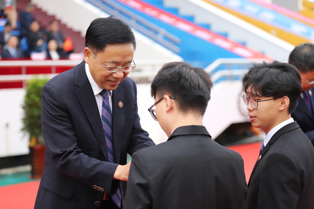 最后,童猛校长寄语2021级新生,希望他们在吉财的美好时光里,充分汲取“尚学致用,择善鼎新”的精神力量,在“明德崇实”校训精神的滋养下,筑牢理想信念,夯实专业根基,练就过硬本领。保持身心健康,铸就高尚品格,拥抱新时代、奋斗新时代、荣耀新时代,早日成长为国家栋梁之才!