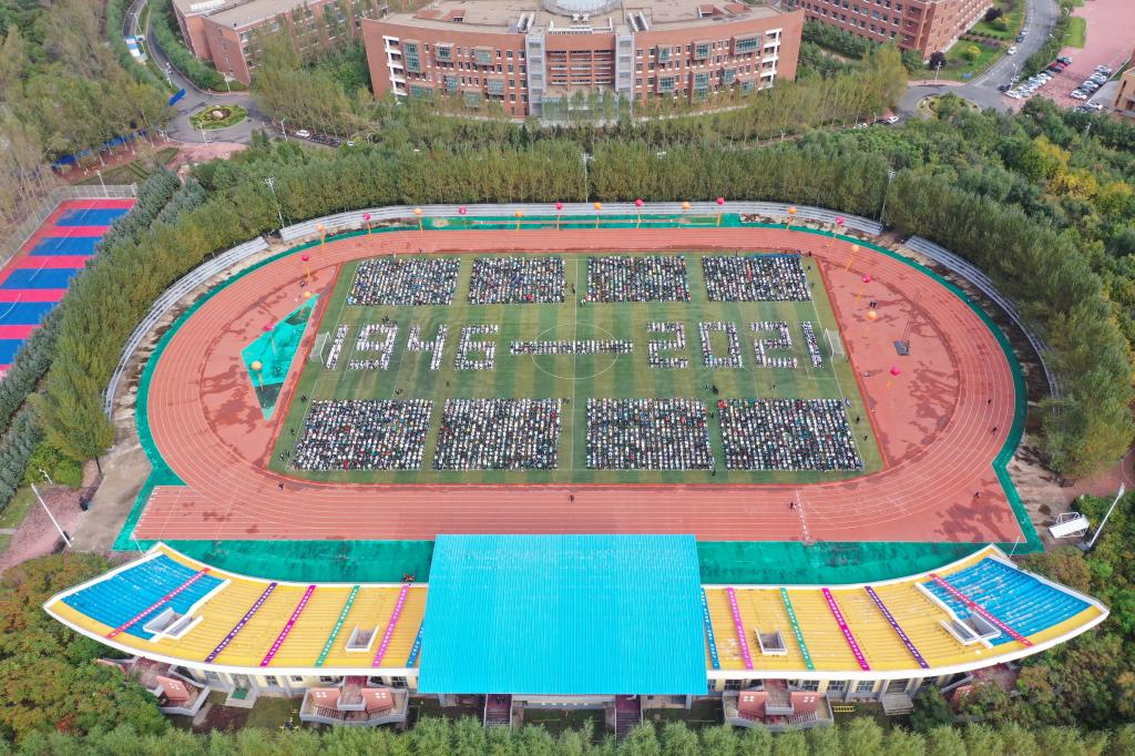 随后,税务学院青年教师范阳、国际交流学院青年教师张铭元、新闻与传播学院青年教师付诗雯、亚泰工商管理学院青年教师赵凡淞、经济学院青年学生卢靖楠、统计学院青年学生王可儿、九台农商银行金融学院青年学生范笑楠、公共管理学院青年学生牛芊力8位师生代表带来了配乐诗朗诵《今天,我们为吉财喝彩》。诗歌娓娓道来,饱含深情,描绘了学校创办75年来走过的风雨历程和取得的斐然成绩,歌颂了一代又一代吉财人锐意进取、矢志不渝的奋斗精神,激发了全校师生的爱校之情和报国之志。