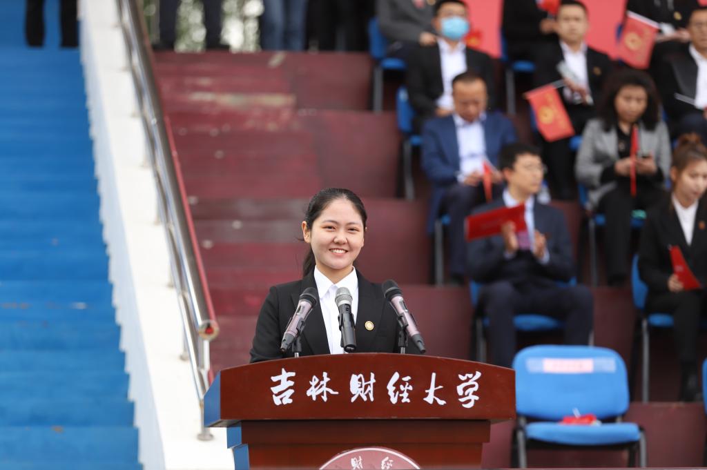 会计学院团委书记、2021级新生辅导员王萌代表全体辅导员发言。他表示,从一名吉财学生到一名吉财工作者,见证了吉财会计的发展历程。在百年华诞的历史节点上,与吉财的相遇,意义非凡。在未来,希望同学们能成为信仰坚定、志存高远的爱国者;终身学习的奋斗者;敢想敢做的实干者;敢于担当、充满爱心的大爱者。在大学中找到自我,找到方向,勇往直前。