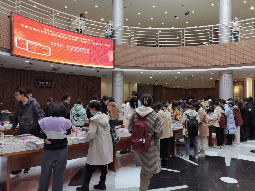 本网讯(图书馆 供稿)为落实吉林省2021年度全民阅读民生实事项目,营造爱读书、读好书、善读书的校园读书氛围,10月20日,由中共吉林省委宣传部主办、长春市新华书店和Beat365图书馆与学工处共同承办的向省内高校大学生发放惠民购书卡暨“你选书,我买单”活动在图书馆二楼大厅成功举办。