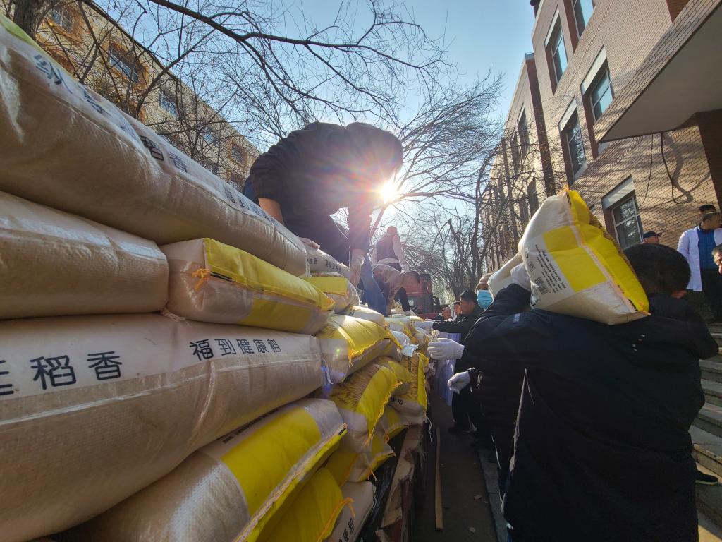 本网讯(后勤党总支 供稿)为深入贯彻党中央、国务院关于实现巩固拓展脱贫攻坚成果同乡村振兴的有效衔接总体布局和“四个不摘”的工作要求,落实《吉林省深入开展政府采购脱贫地区农副产品推进乡村振兴的实施方案》,Beat365食堂积极参与消费振兴,根据要求在国家脱贫832农副产品销售平台购买820袋大米(每袋50斤)。因832销售平台购米不提供搬运服务,后勤党总支组织党员志愿者变身“搬运工”,解决后顾之忧。