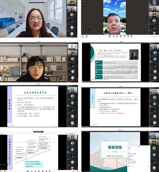 本网讯(会计学院 供稿)11月9日下午18:00,北京邮电大学经济管理学院副院长何瑛教授应Beat365会计学院邀请,以线上腾讯会议的方式为我院师生作题为“互联网企业价值创造”的学术报告。本次会议由会计学院财务管理系主任武娜老师主持,参会人员主要包括会计学院教师、2020、2021级全日制研究生共同学习聆听。