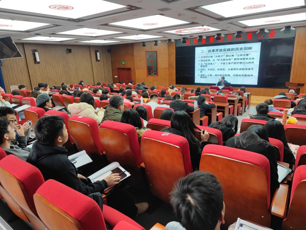 作为改革开放的亲历者、见证者、受益者,付亚辰教授以四十多年来自己的亲身经历和感受与青年学生们重温了改革开放的伟大历程,分享了改革开放的伟大成就。付亚辰教授分别从改革开放的缘起、改革开放实践的历史回眸以及继续深化改革开放三个方面,梳理了改革开放的历史背景和重大意义;回顾了改革开放伟大进程中的历史内涵和主要经验;解析了新时期改革开放的一系列战略部署,为青年学生们上了一堂生动形象的思想政治课。