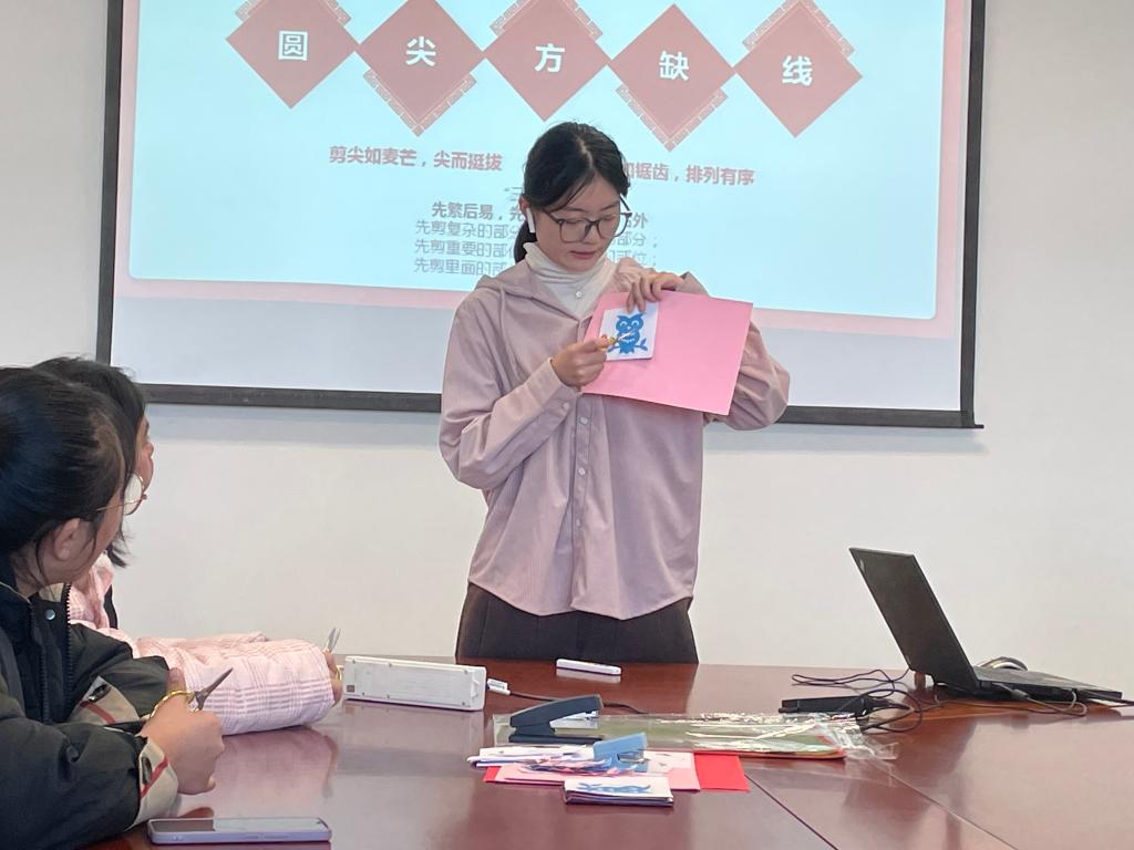 本网讯(图书馆 供稿)11月24日下午2:00由图书馆主办,校学生会学习部承办的第三十七期“学子讲堂”于图书馆三楼3010第三研讨室正式开讲。受疫情防控影响,本次“学子讲堂”以线上腾讯会议直播和线下小范围交流相结合的形式展开。本次邀请到的主讲人为外国语学院英语2141班王然同学,宣讲主题是:《中国剪纸》。图书馆参考咨询部王兰、滕云老师出席了本次活动。