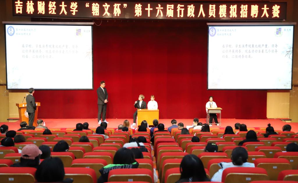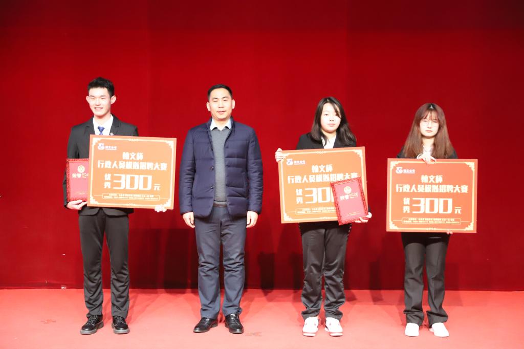 本网讯 为提升毕业生在模拟招聘中了解大学生就业应聘应该具备的能力,进而提高学生在严峻就业形势下和人才市场激烈竞争中的应聘技巧和社会竞争力,由校招生就业处和公共管理学院合办,公共管理学院团委承办的“翰文杯”第十六届行政人员模拟招聘大赛决赛于11月25日晚六点,在图书馆报告厅成功举办。参加活动的嘉宾和评委有:校招生就业处处长陈德民、公共管理学院党总支书记李俊生、公共管理学院副院长聂英、翰文教育校长郭玉红、公共管理学院王璐航、吴征阳、校招生就业处赵光旭、翰文教育讲师王力、卑月爽以及选手所在学院辅导员老师。