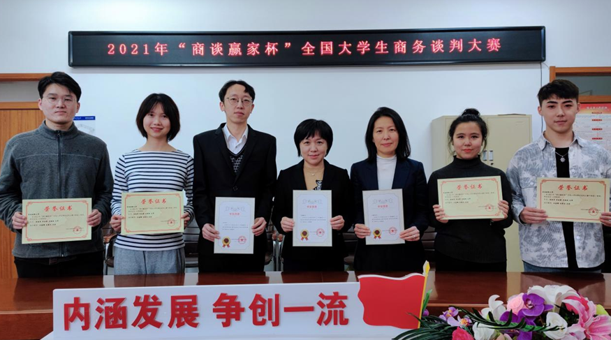 本网讯(国际经济贸易学院 供稿)近日,由全国经济与管理院校工业技术学研究会沟通与谈判委员会主办,江西财经大学工商管理学院承办的历时半年的2021年“商谈赢家杯”全国大学生商务谈判大赛总决赛落下帷幕。Beat365参赛的两支队伍在总决赛中皆荣获全国二等奖。参赛研究生陈傲奇同学表现突出,荣获“最佳谈判手”称号,带队的关嘉麟老师、刘蕴喆老师和石林老师荣获“优秀指导教师”荣誉称号。