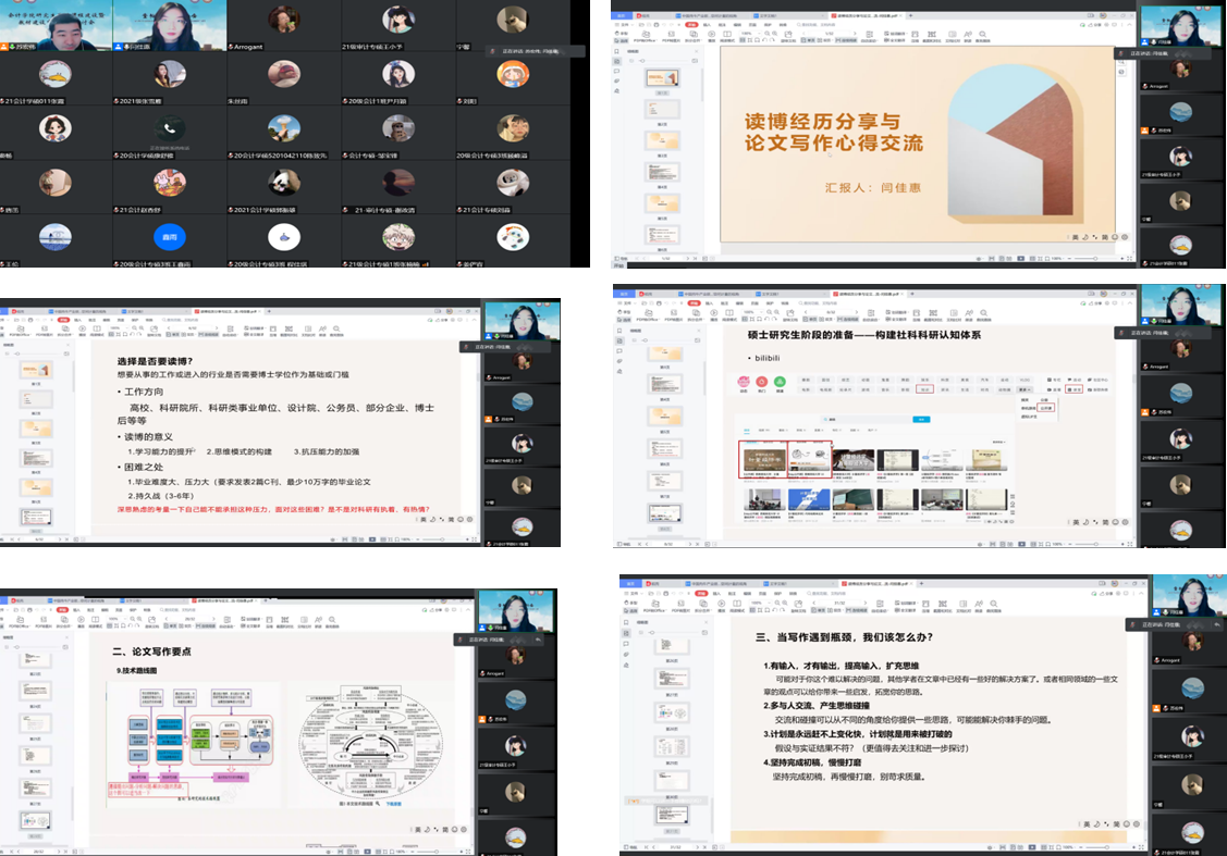 本网讯(会计学院 供稿)疫情特殊时期,为丰富和充实研究生业余活动和提升科研水平,加强疫情期间会计学子的思想引领和教育教学, 全面做好疫情防控工作,Beat365唯一官方网站会计学院举行党旗领航共抗疫,守护校园创平安”系列校友活动,主要组织优秀校友开展系列专题讲座, 3月23日下午18:00,由吉林农业大学农业经济管理专业博士生、Beat365唯一官方网站会计学院2016届会计学硕士研究生闫佳慧师姐,以线上腾讯会议方式为我院学生作主题为“读博经历与论文写作心得分享”学术报告。本次会议由会计学院专硕教育中心主任苏宏伟老师主持,会计学院2020、2021级全日制研究生以及部分本科生计三百余人共同参与聆听。